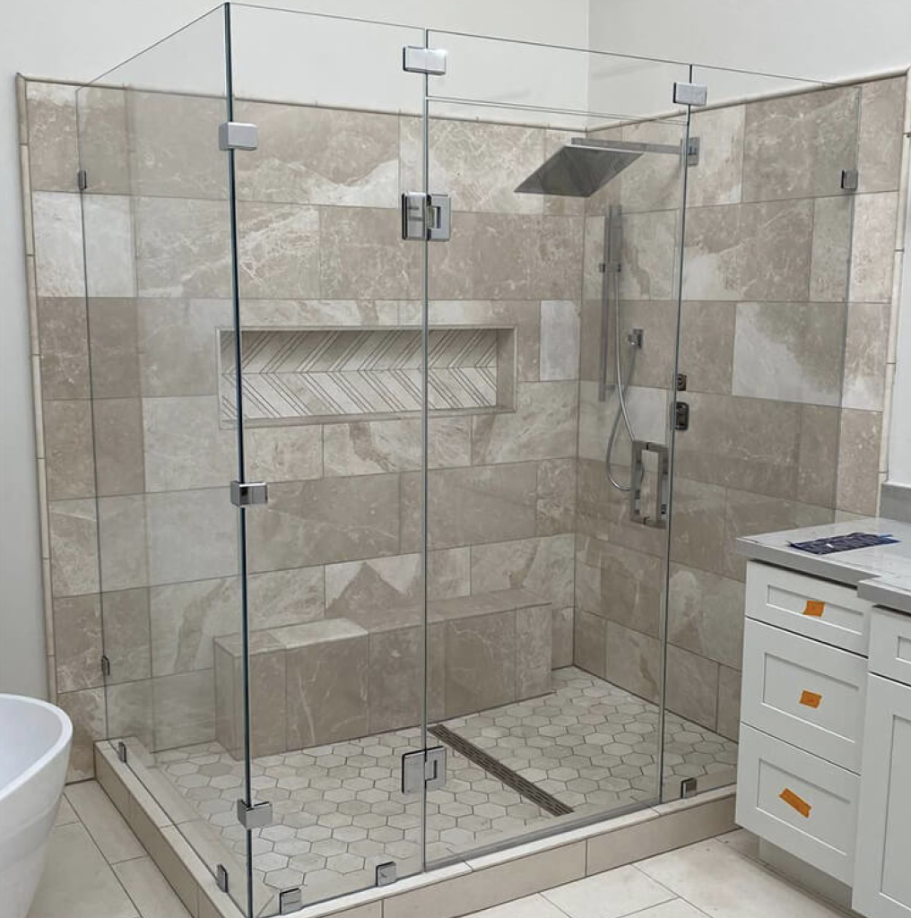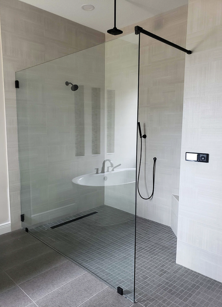 Frameless glass panels create an open, door-free shower experience. Ideal for walk-in layouts, tubs, or custom designs. Clean, minimal, and functional.